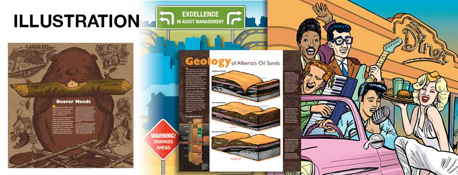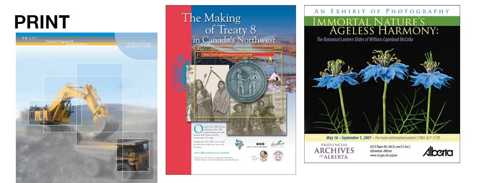 *Note that some examples shown were produced while our principal designer was an employee for the provincial government. Some works also share credit with other team members on those specific projects. (For example, most major exhibit projects involved working on a team with writers, researchers, and 3-D exhibit designers). Please enquire about any specific projects and we would be happy to discuss the areas and responsibilities of all work.