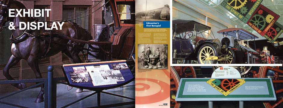 Do your display needs involve a permanent or transportable display? Will your display be used indoors or outdoors? We can produce effective design work and utilize appropriate production methods for your exhibit and display needs. We have developed displays from simple, pull-up banners right up to permanently installed museum exhibits.